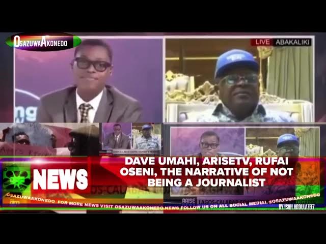 #Columns #AriseTV #Journalism #Oseni #Rufai #Umahi ©October 12th, 2025 ®October 12, 2025 6:06 pm Whenever controversies surround Rufai Oseni, the outspoken and fearless broadcaster on Arise Television, one recurring argument often resurfaces in public discourse — the claim that “Rufai Oseni is not a journalist", critics are quick to emphasize that he lacks a formal academic background in journalism, having originally trained in animal anatomy, but beyond the semantics of qualification, a deeper question emerges: What truly defines a journalist, and what are the core functions of journalism in society? #OsazuwaAkonedo