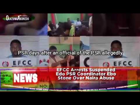 #EFCC #Ebo #edo #Naira #PSR ©March 17th, 2025 ®March 17, 2025 10:11 pm Following widely media reported case of alleged abuse of the naira, the Economic and Financial Crimes Commission, EFCC has arrested and detained Kelly Okungbowa aka Ebo Stone, the Coordinator of the Edo State Public Safety Response Team, the government agency that was suspended a few days ago by the State Governor, Monday Okpebholo over extortion, harassment and unruly behaviour, days after a baby girl was killed when an official of the PSR allegedly dragged steering wheel with the bus driver of a moving vehicle. #OsazuwaAkonedo