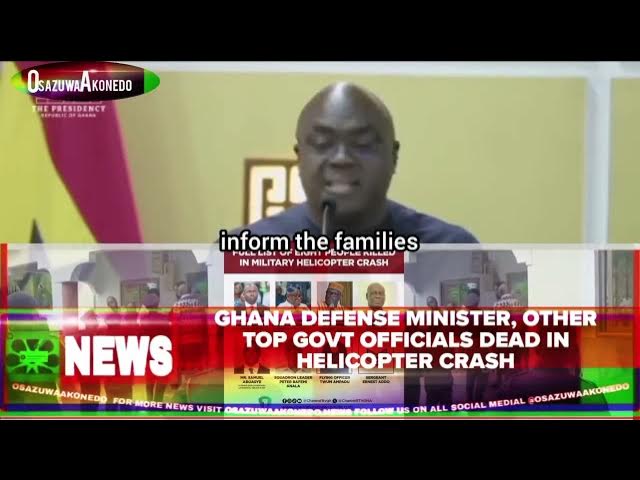#Breaking News #Accra #Ghana #Obuasi ©August 6th, 2025 ®August 6, 2025 6:55 pm Ghana Minister of Defence, Edward Omane Boamah alongside seven other top government officials and military personnel have been confirmed dead, after Ghana Armed Forces in a statement on Wednesday had declared the Z9 Military helicopter missing, stating, the helicopter traveling from the nation capital in Accra to Obuasi in Ashanti region went off from radar at 9:12am with three crew members and five passengers onboard. #OsazuwaAkonedo