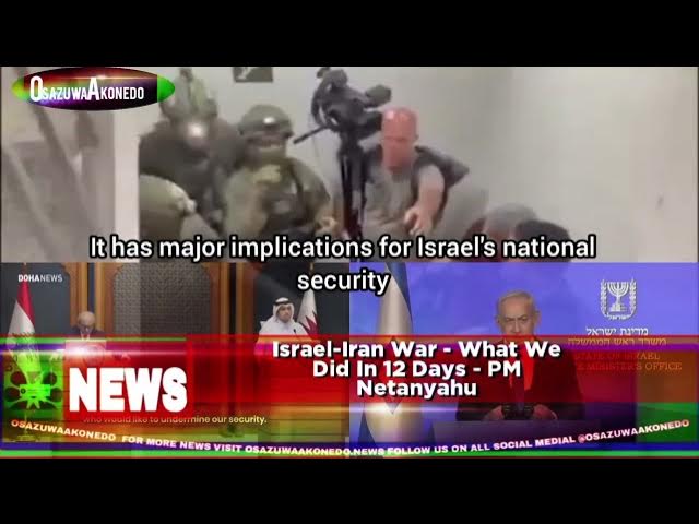#Breaking News #Iran #Israel #Qatar #US ©June 25th, 2025 ®June 25, 2025 9:43 am Israeli Prime Minister, Benjamin Netanyahu has listed what the Troops of Operation Rising Lions achieved in a 12-day war with the Islamic Republic of Iran, stating that Israel will now pursue the path of making peace with Nations in the Middles East and compensate those that suffered damages, specifically stating that all the buildings destroyed by Iran ballistic missiles will be rebuilt anew by the Israeli government for the victims, adding that; without the immense achievements in Gaza, in Lebanon, in Syria, and against the said terrorism in Judea and Samaria, Israel would not have been able to reach Tehran, made the statement on Tuesday evening after Iran President, Masoud Pezeshkian announced an end to the 12 days tensed and frightening military campaigns that the United States led by President Donald Trump took side with Israel and officially and openly got itself involved in the war on Saturday 21, 2025 when US special military troops flew several B2-Bombers fighter jets and attacked three Iranian cities of Fordow, Natanz and Isfahan with allegations that the Iranian Nuclear facilities in the cities have been destroyed, allegations several media reports and authorities in Tehran have dismissed but in retaliation to the US invasion of the Iranian Territory, the Islamic Revolutionary Guards Corps, IRGC launched six missiles into Qatar on Monday with the intention to destroy US military base in the Qatari capital of Doha known as US Al-Udeid airbase, but, according to Qatar State media, Doha News, all the missiles were intercepted. #OsazuwaAkonedo