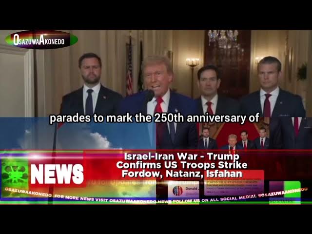 #Breaking News #Fordow #Iran #Isfahan #Israel #Natanz #Trump #US ©June 22nd, 2025 ®June 22, 2025 6:21 am United States, US President, Donald Trump has confirmed that the US military troops have attacked Nuclear facilities in the Iranian cities of Fordow, Natanz and Isfahan on Saturday night June 21, 2025 according to US local time of Pacific Standard Time, PST which was already early morning night on Sunday June 22, 2025 for countries on Greenwich Mean Time, GMT, saying, the US military attacks on Iran was completely successful as Whitehouse published photographs of President Trump and his cabinet members said to be watching the US operations in Iran Nuclear sites, although no authority in Iran has issued any statement over the attacks and some of the media in Iran are yet to give update on the conditions of things in the three cities, but an apparent military insider media of Iran Armed Forces, Daily Iran Military tweeted that residents in the vicinity of Fordow reported no indication of a major explosion while also adding that the Deputy Political Editor of Islamic Republic of Iran Broadcasting, IRIB was on live TV programme in the station saying Iran has already evacuated three Nuclear sites some time ago, this, Israel Defense Forces, IDF earlier on Saturday night posted an aerial view recorded video of the Israeli troops bombing a location said to be Isfahan Nuclear site facility said the Iranian Uranium enrichments reconversion were taking place.