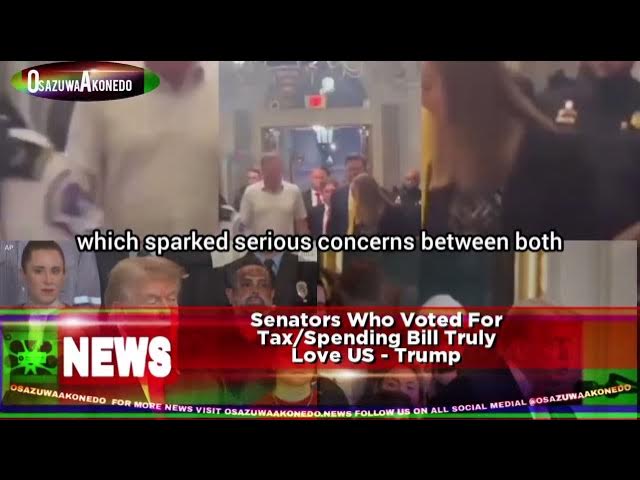 #Breaking News #Musk #Trump #US ©June 29th, 2025 ®June 29, 2025 5:27 pm United States, US President, Donald Trump says, Senators who voted for the passage of his Tax/Spending Bill he tagged as “One Big Beautiful Bill” are people that truly love the North America country, made the statement via his Truth social media platform shortly after the bill narrowly scaled through at the Senate chamber, after two members of his Republican Political Party voted against the bill that later succeeded with 51 votes in favour and 49 votes against the bill which the Senate plenary session was apparently tensed as the US Vice President, JD Vance was seen in the video footage made online by close watchers entering the Capitol Hill venue of the Senate meeting on Saturday night. #OsazuwaAkonedo